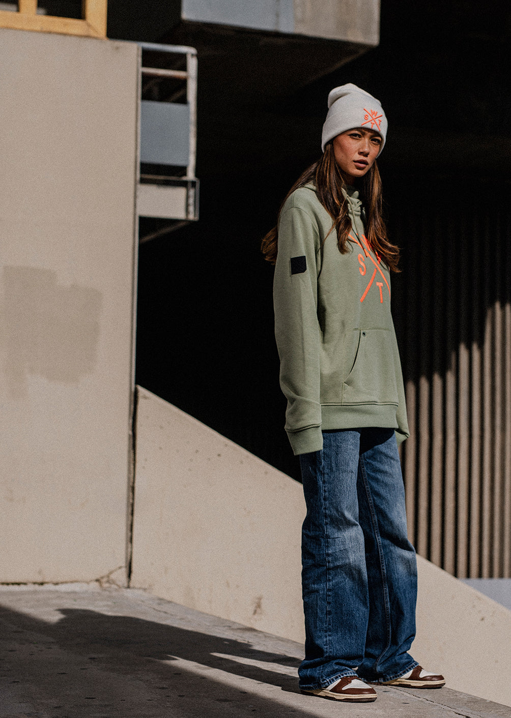 Sa coupe droite légèrement ajustée soigne le rendu, sans rien sacrifier côté confort. Le molleton "French Terry" non gratté, doux au porter et naturellement respirant, évite la surchauffe tout en gardant une sensation agréable contre la peau idéal entre deux runs, ou pour les trajets vers le spot.