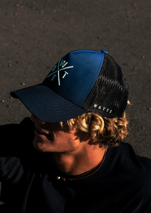 TOKYO Le style en maîtrise, sombre et subtilement magnétique. Adoptez la casquette Tokyo aux tons Noir & Bleu Deep Dye, vous qui roulez avec assurance et intensité, et qui trouvez votre style dans les détails. Sa teinte dégradée mêle noir dense et bleu profond, dans un contraste feutré, presque liquide, qui évoque les sessions nocturnes à la mer comme au skate park.