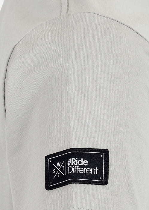- Patch tissé appliqué et centré sur le bas de la manche droite