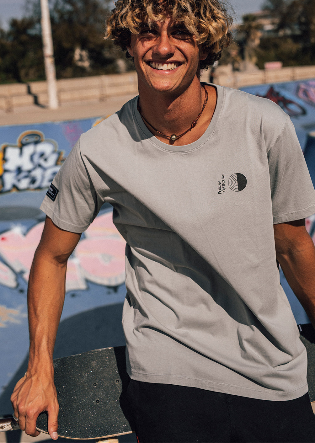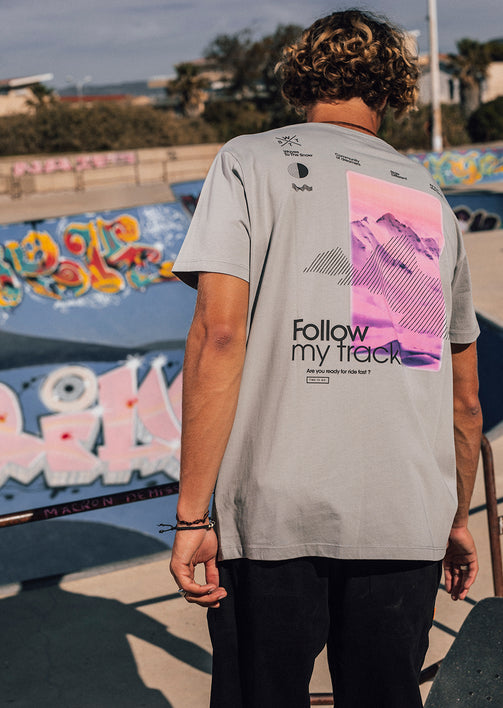 Le t-shirt Tracks Gris Carbone se démarque par son équilibre entre minimalisme et expression visuelle forte. Le contraste entre la base grise et l’imprimé rose/orangé crée une vibe urbaine inspirée par les grands espaces. Coupé dans un coton organique doux et respirant, il convient à toutes les saisons. Avec sa coupe Regular et ses finitions soignées, il devient un basique graphique à porter sans modération.