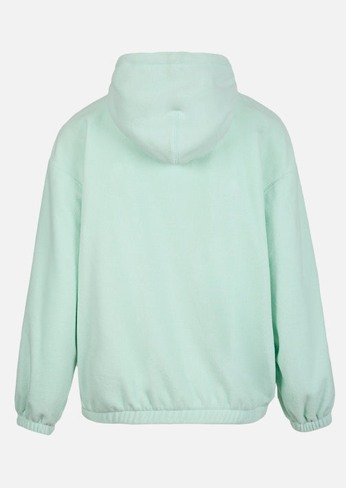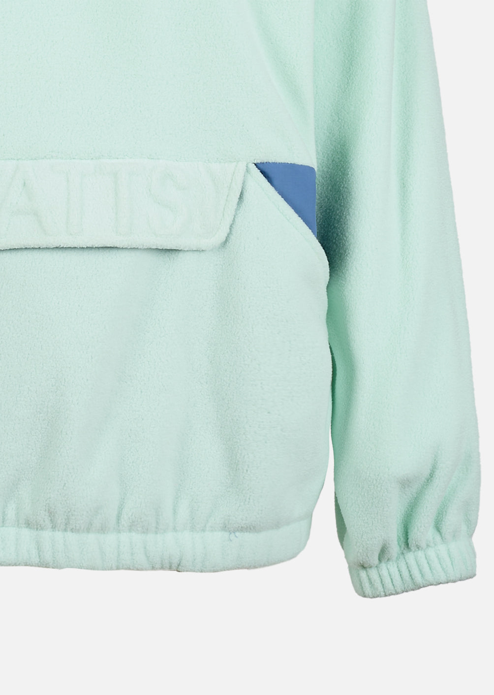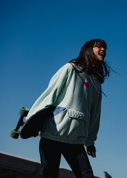 Le hoodie UPSIDE Vert Clair modernise la polaire d’inspiration alpine avec une approche graphique et fonctionnelle. Son coloris pastel lumineux contraste élégamment avec les empiècements sombres et le col montant fermé par une patte tissée signature. Le look est à la fois doux et affirmé, parfait pour les exploratrices urbaines et sportives.