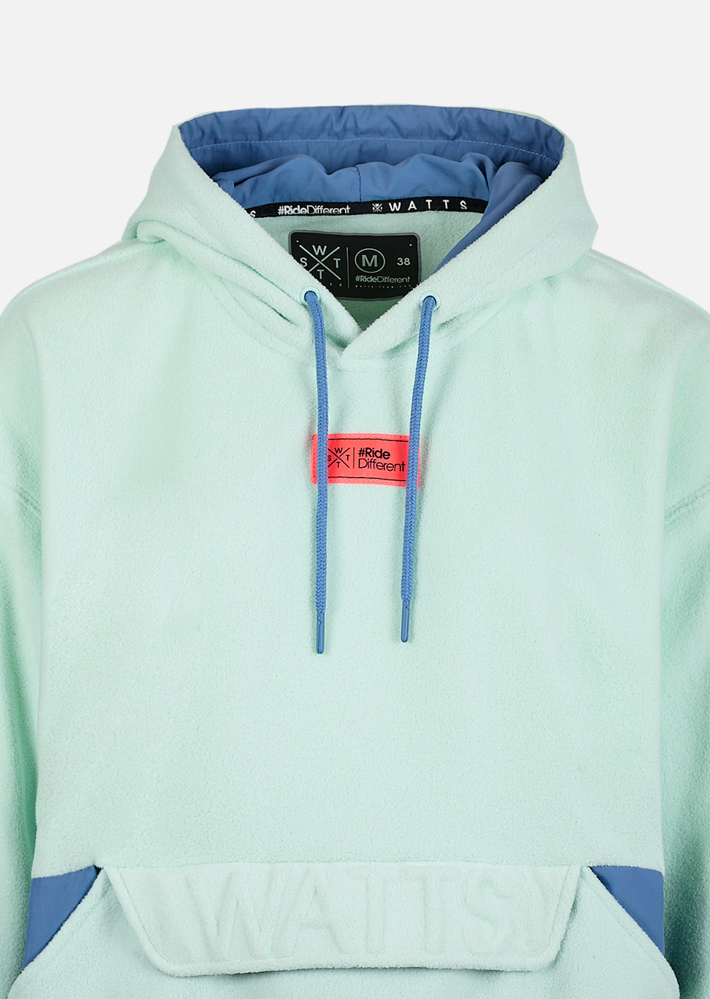 Sa matière polaire recyclée légère offre un équilibre idéal entre chaleur et respirabilité, ce qui en fait une pièce incontournable pour les intersaisons. La grande poche kangourou à rabat ajoute une touche technique, tandis que la capuche bien structurée complète la silhouette avec style.