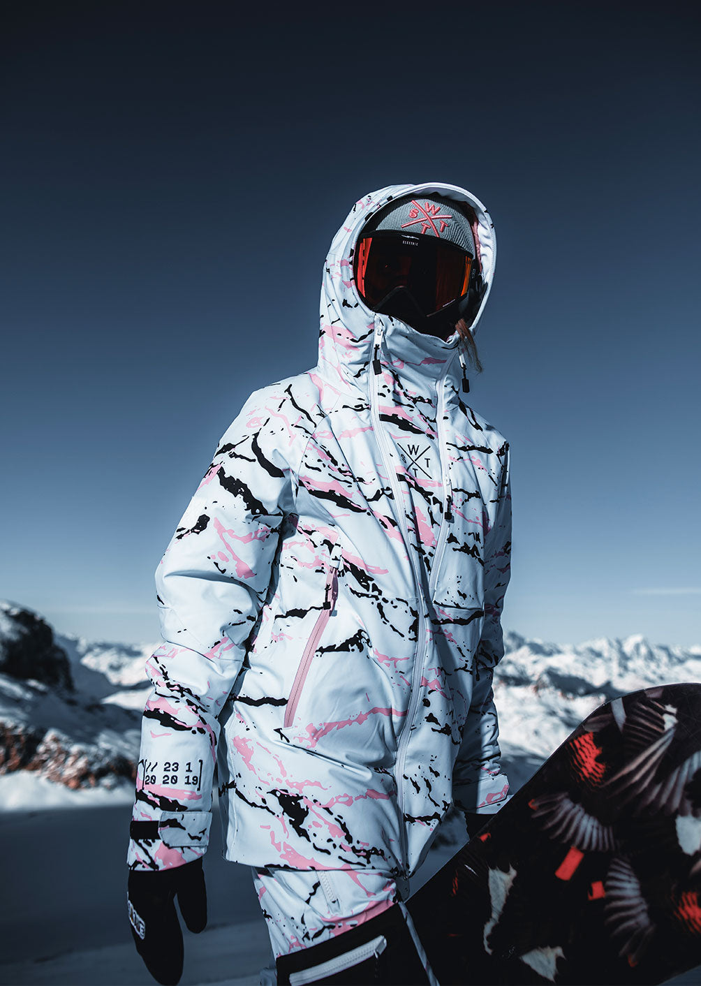 Venom-G Camouflage Bleu Clair : une veste snow, technique, conçue pour les lignes engagées, les terrains sauvages… et les rideuses haute performance.