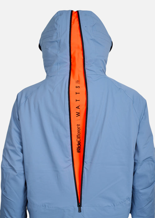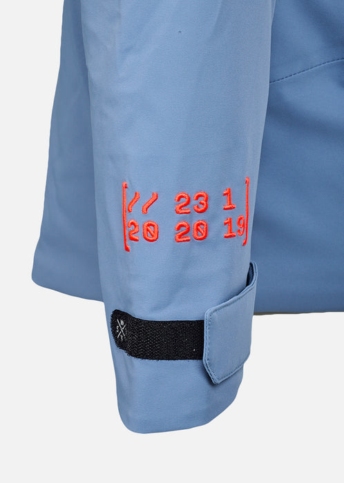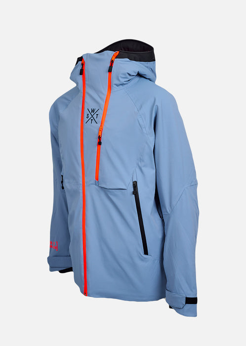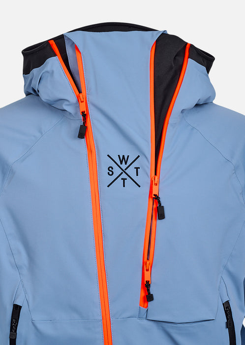 Venom Bleu Gris, c’est la veste de ski technique de ceux qui s'expriment en ridant. Photographie retouchée Référence produit : 1VENOMW4015