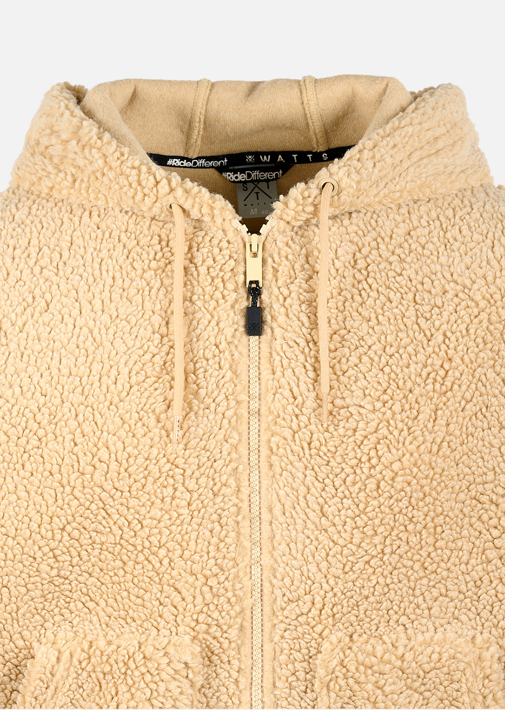 - Etiquette drapeau "WATTS", insérée dans la couture côté Droite