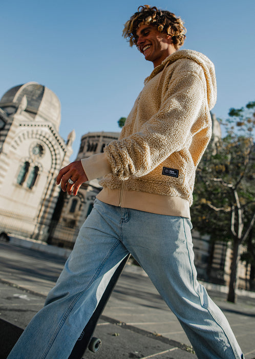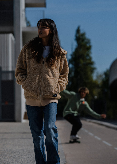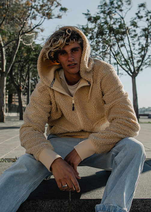 Confectionné en sherpa recyclé haut de gamme, il offre une isolation thermique performante, tout en conservant un touché moelleux et agréable. C’est la pièce cocon par excellence : chaude sans être étouffante, confortable tout en restant structurée.