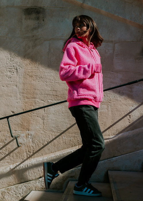 Conçu en sherpa recyclé premium, il garantit une isolation efficace tout en restant ultra-moelleux au toucher. C’est la pièce cocon indispensable : chaude mais respirante, enveloppante sans perdre en structure — idéale pour les sessions fraîches, les trajets matinaux ou les journées chill.