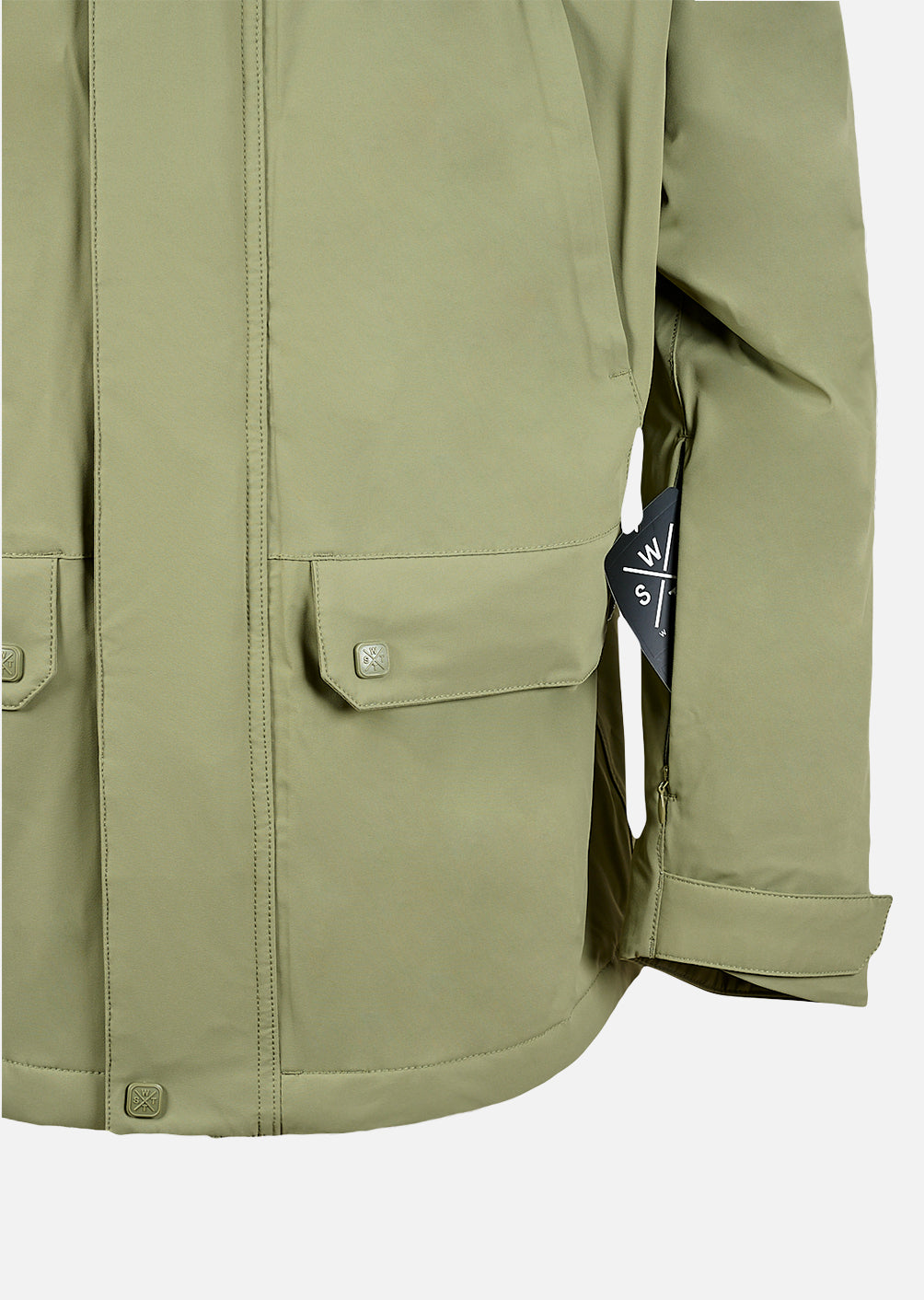- Veste fermée par un zip étanche sur le milieu devant et caché par un rabat fermé par 5 pressions