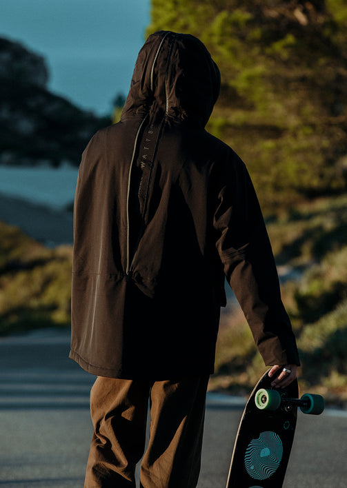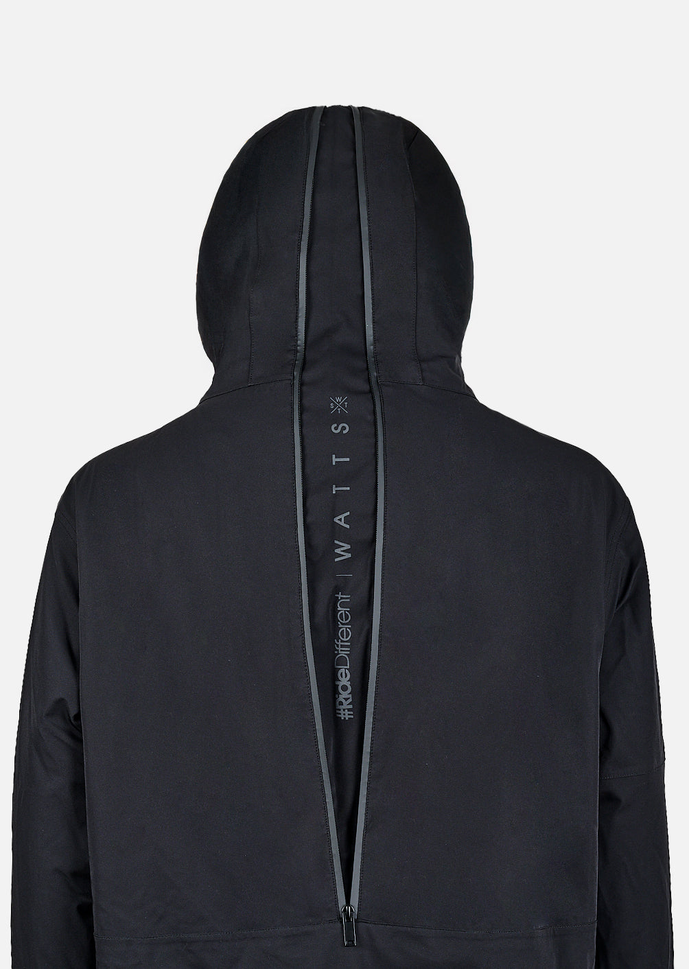 Chaque détail a sa raison d’être : zip arrière siglé WATTS ton sur ton, poches poitrines invisibles, rabats à pressions, poche forfait intégrée, grande poche mesh intérieure pour le masque ou les essentiels. Sobre dehors, technique dans le fond.