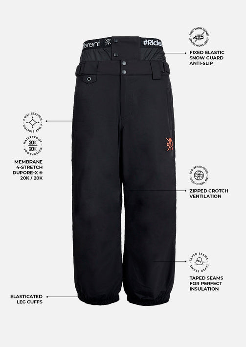 Que vous soyez sur piste, dans la poudre ou en train de poser un switch 540, le X-Japan Noir combine l’efficacité d’un pantalon de haute montagne et le look affirmé d’une pièce urbaine.