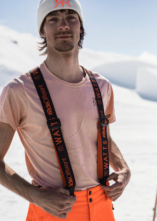 Le jeu de contraste entre le noir intense et l’orange fluo visible sur les logos WATTS et #RideDifferent apporte une forte identité graphique, fidèle à l’ADN de la marque. Leur longueur réglable de 100 cm assure une tenue parfaite tout au long de la journée.