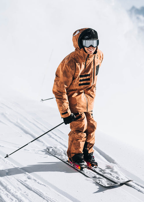 - Avec ses coutures thermosoudées intégrales, sa ceinture ajustable, ses guêtres pare-neige amovibles et ses élastiques antiglisse, le X-Rodeo Marron Tie & Dye offre un maintien parfait et une protection maximale contre neige et humidité, sans jamais brider votre liberté de mouvement.