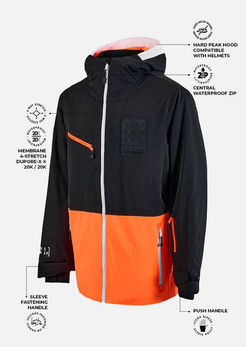Pensée pour les riders qui enchaînent piste, bords de domaine et zones encadrées, la veste de ski X-Temper Noir et Orange Fluo combine ce qu’il faut de sobriété et d’impact visuel.