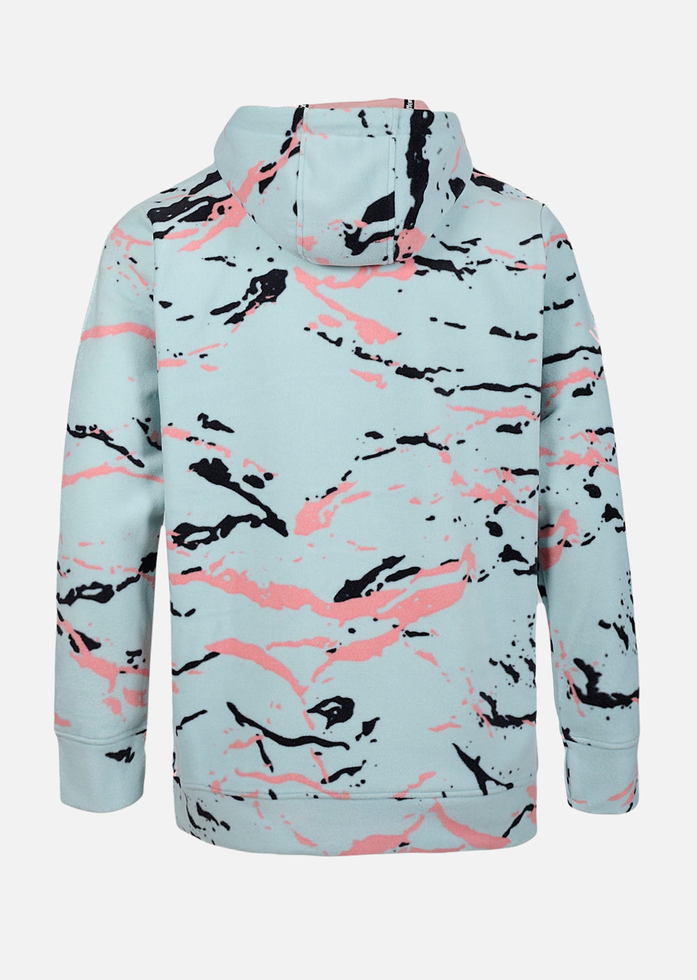 Conçu en matière polaire recyclée, légère mais isolante, ce hoodie garde la chaleur sans bloquer la respiration du corps. Un mix doux et efficace pour les randos, les journées fraîches en ville, ou les allers-retours jusqu’au spot.