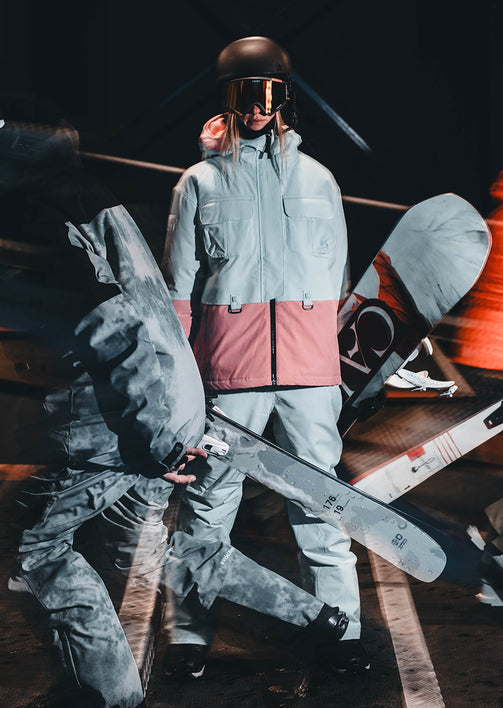 Douceur glacée et performance stretch : une veste de ski technique à l’élégance maîtrisée.
