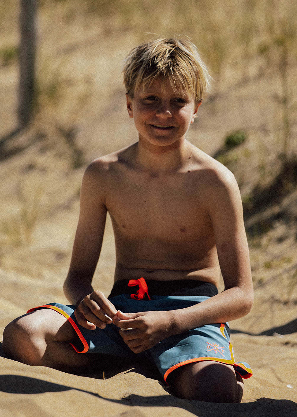 Grâce à son tissu léger et extensible, il accompagne tous les mouvements sans entraver le confort. Son séchage rapide permet aux enfants de passer de l’eau aux jeux de plage sans rester mouillés trop longtemps.